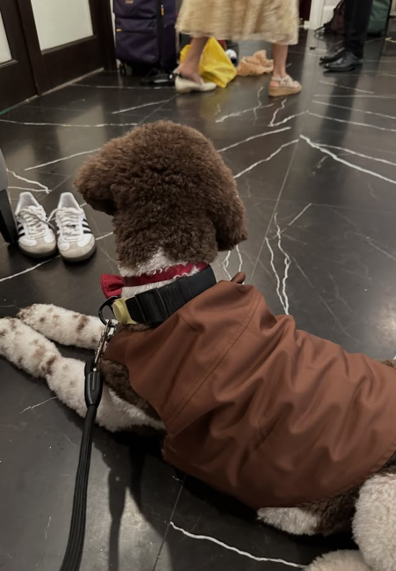 For weddings where we assist with aisle escorting, we wear black formal attire, similar to service staff. This ensures we blend in seamlessly with your event while keeping the focus on you and your pet!